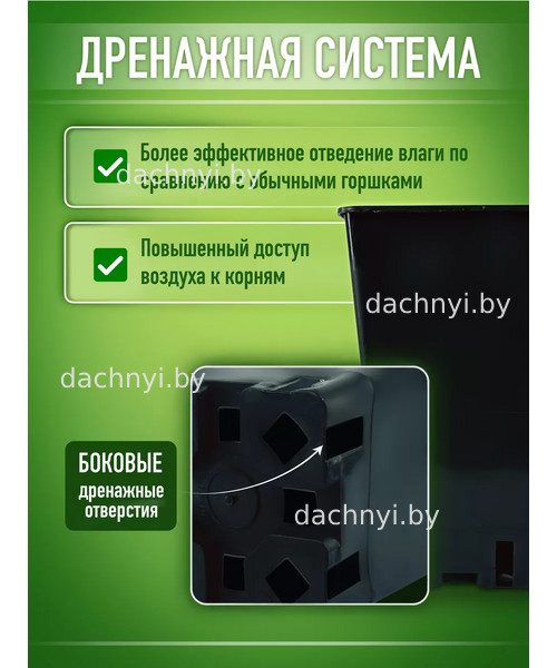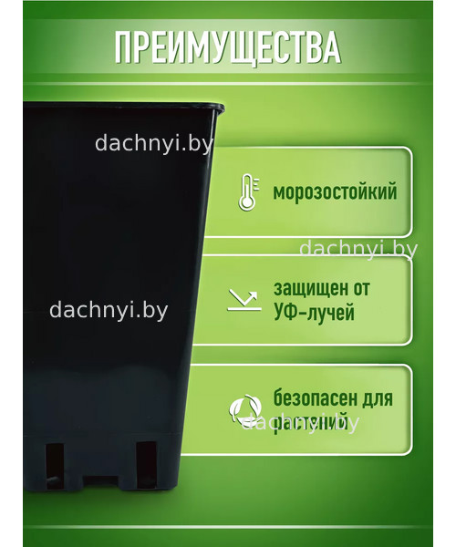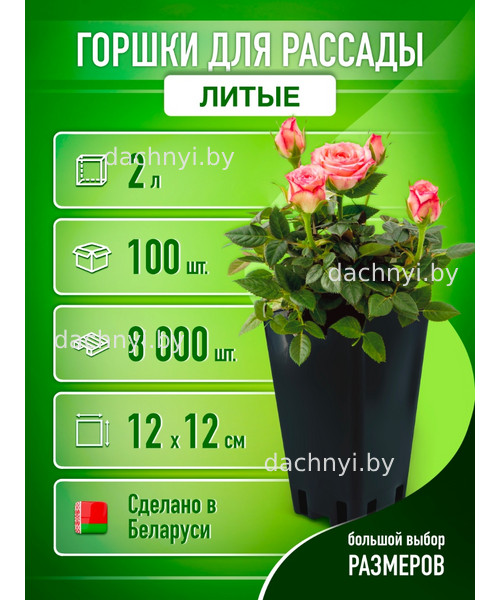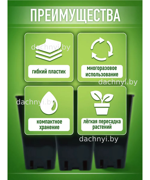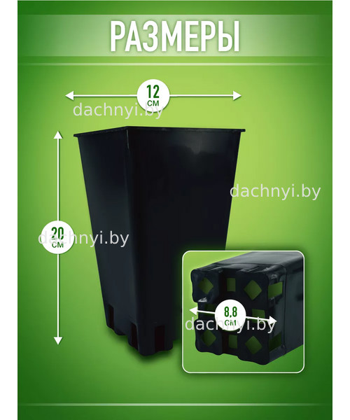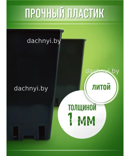 Пластиковые горшки черного цвета квадратной формы объемом 2 л. станут помощниками тем, кто занимается выращиванием цветов и растений. Технический высокий горшок для рассады изготовлен из прочного морозостойкого уф - стабилизированного пластика методом литья. Размеры твердого горшочка: высота – 18 см, ширина – 14 см. Благодаря качественному составу цветочный контейнер остается целым при умеренном надавливании. Рифленое дно удлиненного стаканчика под рассаду позволяет использовать его на твердой и мягкой поверхности, обеспечивая поступление воздуха. Дренажные отверстия способствуют эффективному отведению влаги, тем самым защищая прикорневую систему растений от гниения и болезней в случае обильного полива. Глубокий удлиненный ящик под саженцы 2000 мл не боится перепадов температуры, не выцветает, поэтому может эксплуатироваться на улице или на балконе, на подоконнике или на даче, а также в теплице. Однотонные одинаковой высоты, они аккуратно смотрятся на подоконнике, создают ощущение зимнего сада или оранжереи. Пластиковые горшки под цветы отлично подходят для уличных цветочных композиций и клумб, перголы, выращивания на балконе или лоджии. В технические стаканчики для растений удобно отсаживать алоэ и азалию, бегонию, камелию и прочие суккуленты. Декоративные горшки для петуний и фиалок не придется разрезать, достаточно лишь увлажнить землю и легким движением достать молодой побег. Отдельная высадка позволяет контролировать освещенность, увлажненность и подкормку каждого саженца, сдерживает распространение вредителей. Универсальный транспортировочный стакан подходит для выращивания рассады лука и огурцов, помидоров и перцев. Отлично подходит для высадки клубники и баклажанов, микрозелени и кактусов, гортензии. (500 мл)