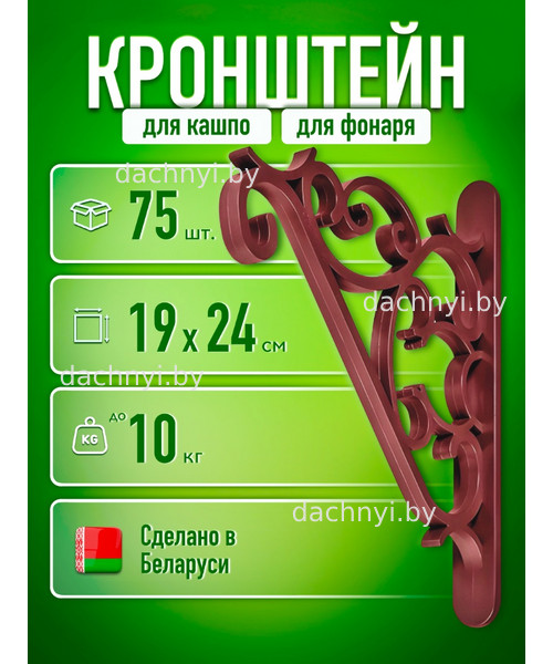 Держатель для кашпо дополнит и украсит ваш сад, дачу, дом и квартиру, подходит для использования внутри и снаружи помещения. Кронштейн сделан из полипропилена высокой плотности 6 мм. Выдерживает нагрузку до 10 кг. Максимальный диаметр горшка 34 см. Прикручивается на любую вертикальную плоскость. Надежное крепление держатель прослужит много лет. Подвесная подставка для цветов в горшках и фонаря подойдет для любых комнатных растений и предметов декора. Цветочница для растений освободит место на вашем подоконнике и станет красивым украшением вашей комнаты. Подвес для кашпо - отличный подарок любимой девушке, подруге, сестре, маме или коллеге. Сделано в Беларуси. Заказывайте подставки для цветов и радуйте себя и Ваши цветочки! Держатель для цветов, кронштейн для кашпо, горшка, фонаря настенный, подставка под цветы на стену